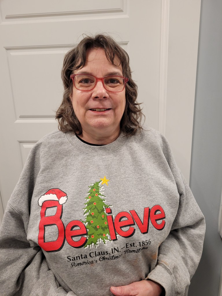 My daughter in law helped me with makeup. In my whole life, I have never felt even the least bit attractive. I see a person with stringy hair, bad teeth, dirty neck, red skin and warts and dark circles under my eyes. We talked and she said I needed to stop the negative talk about my face. She said I was beautiful! I truly thought about a “tune up” with a therapist but I got this. This was makeup me.