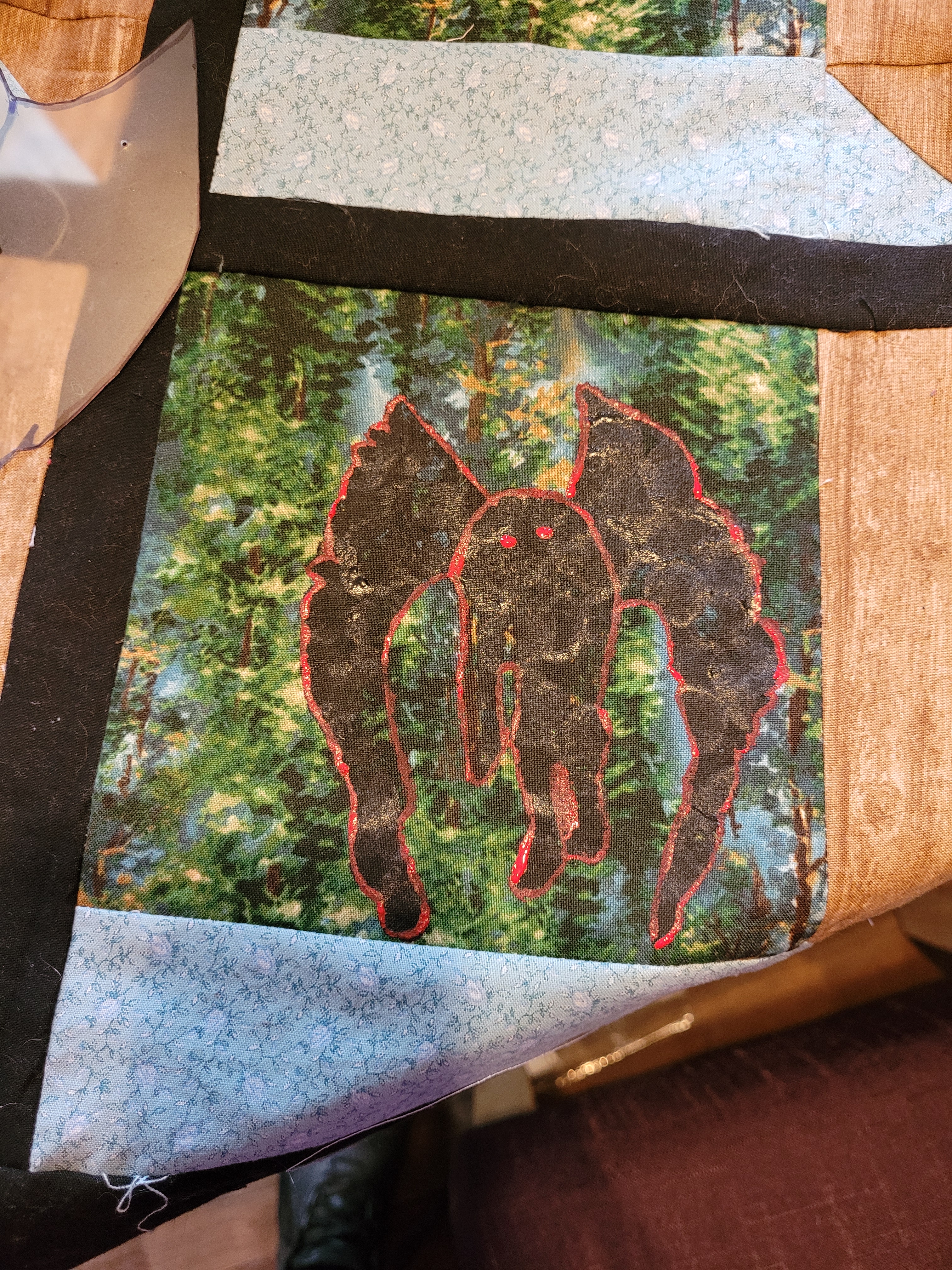 These are my current projects. We are doing a Big Foot Festival the end of June and I have been designing small quilts based on West Virginia folklore and legends.